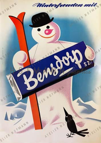 Tauchen Sie ein in die zauberhafte Welt der Bensdorp Schokolade, wo selbst der kälteste Winter durch die Wärme süßer Genüsse erhellt wird. Unser exklusives Werbeposter, das einen fröhlichen Schneemann umgeben von verschneiten Wundern zeigt, verkündet eine zeitlose Botschaft: „Auch im Winter immer eine Schokolade von Bensdorp dabei“.